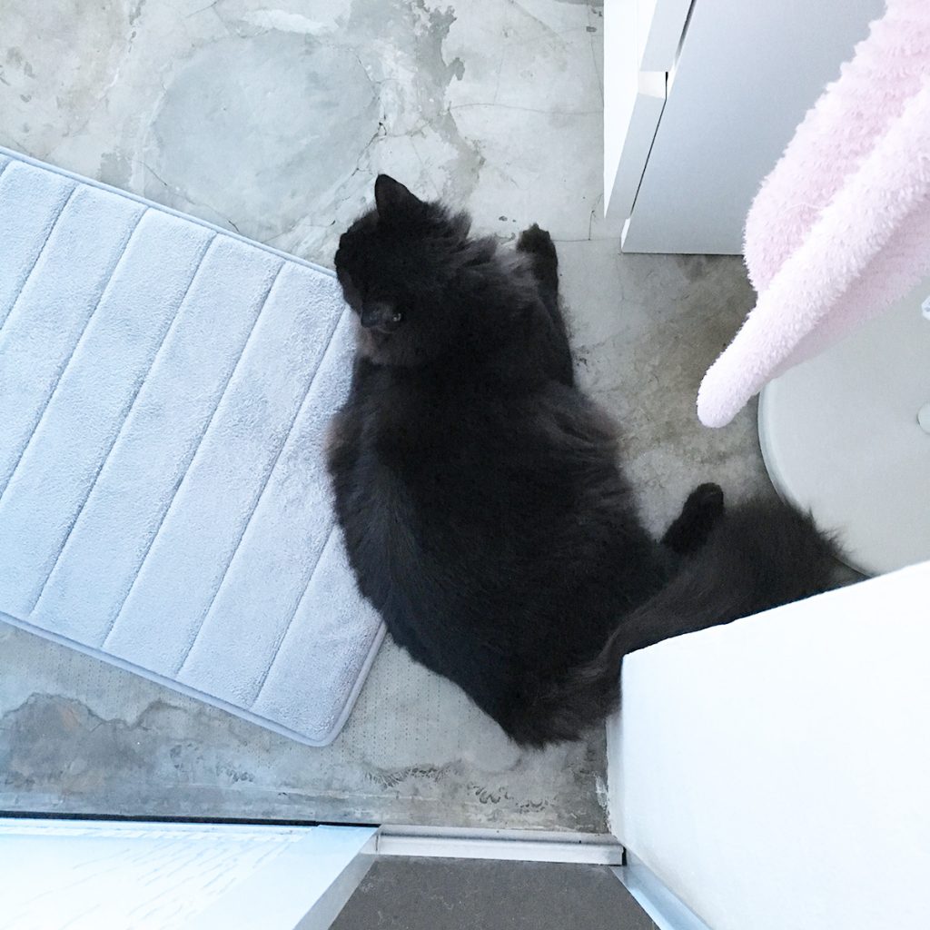 Waiting for me to step out of the shower.