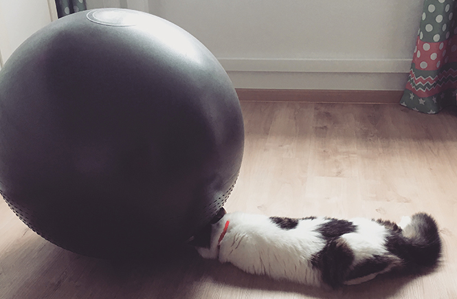 And then he climbs further up and hugs my belly.